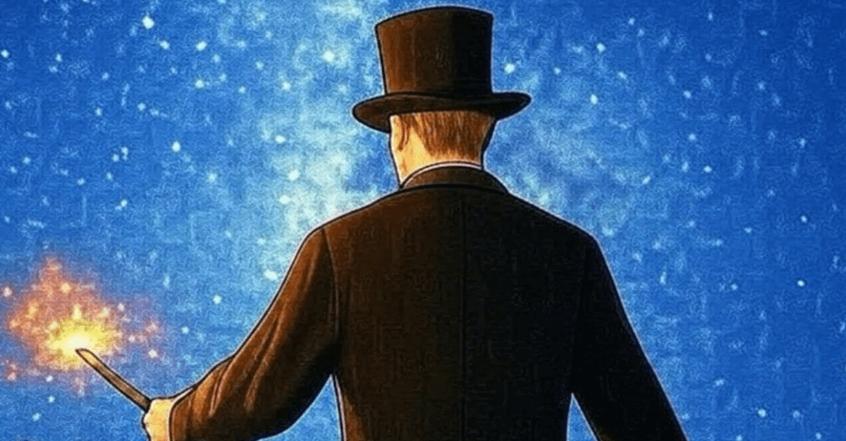 シルクハットから次々と星が飛び出し、真っ暗だった広場を一瞬で明るく照らした。